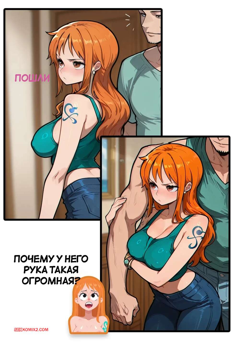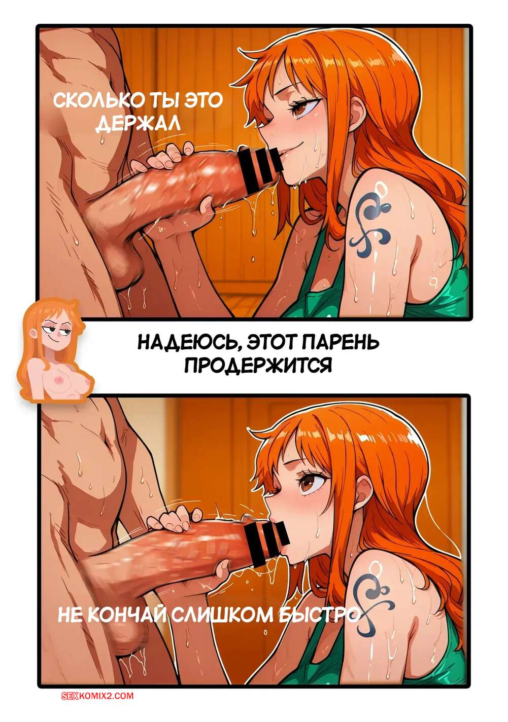 ΠΠΎΡΠ½ΠΎ ΠΊΠΎΠΌΠΈΠΊΡ One Piece. ΠΠ΅ΡΠ΅ΡΠΏΠ΅Π»ΠΈΠ²ΠΎΡΡΡ ΠΠ°ΠΌΠΈ. Namis Impatience ΠΡΠ°ΡΠΎΡΠΊΠ° ΠΠ°ΠΌΠΈ ΠΈΡΠΏΡΡΡΠ²Π°Π΅Ρ ΡΠΈΠ»ΡΠ½ΠΎΠ΅ Π²ΠΎΠ·Π±ΡΠΆΠ΄Π΅Π½ΠΈΠ΅ ΠΈ Ρ ΠΎΡΠ΅Ρ ΡΡΠ°Ρ Π°ΡΡΡΡ. ΠΠ΅Π²ΡΡΠΊΠ° ΠΎΡΠΏΡΠ°Π²ΠΈΠ»Π°ΡΡ ΠΊ ΡΠ²ΠΎΠ΅ΠΌΡ Π΄ΡΡΠΆΠΊΡ ΠΈ ΡΡΠ°Π»Π° ΡΠΎΡΠ°ΡΡ Π΅Π³ΠΎ Π±ΠΎΠ»ΡΡΠΎΠΉ ΡΠ»Π΅Π½, ΠΏΠΎΡΠ»Π΅ ΡΠ΅Π³ΠΎ Π΄Π°Π»Π° Π²ΡΠ΅Π±Π°ΡΡ ΡΠ²ΠΎΡ ΠΏΠΈΠ·Π΄Π΅Π½ΠΊΡ, ΠΏΠΎΠ»ΡΡΠΈΠ² Π½Π΅Π²Π΅ΡΠΎΡΡΠ½ΠΎΠ΅ ΡΠ΄ΠΎΠ²ΠΎΠ»ΡΡΡΠ²ΠΈΠ΅.